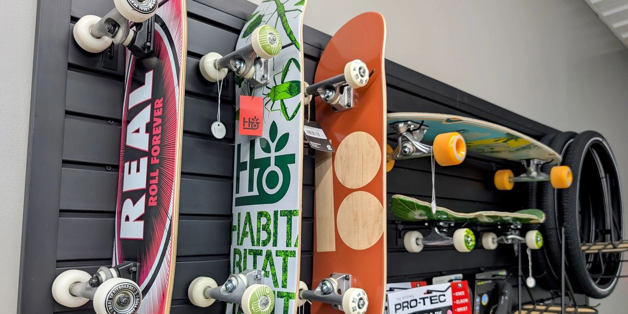 Skateboard brands include Anti-Hero, Flip, Habitat, Powell, Plan B, Primitive, Real & Toy Machine.